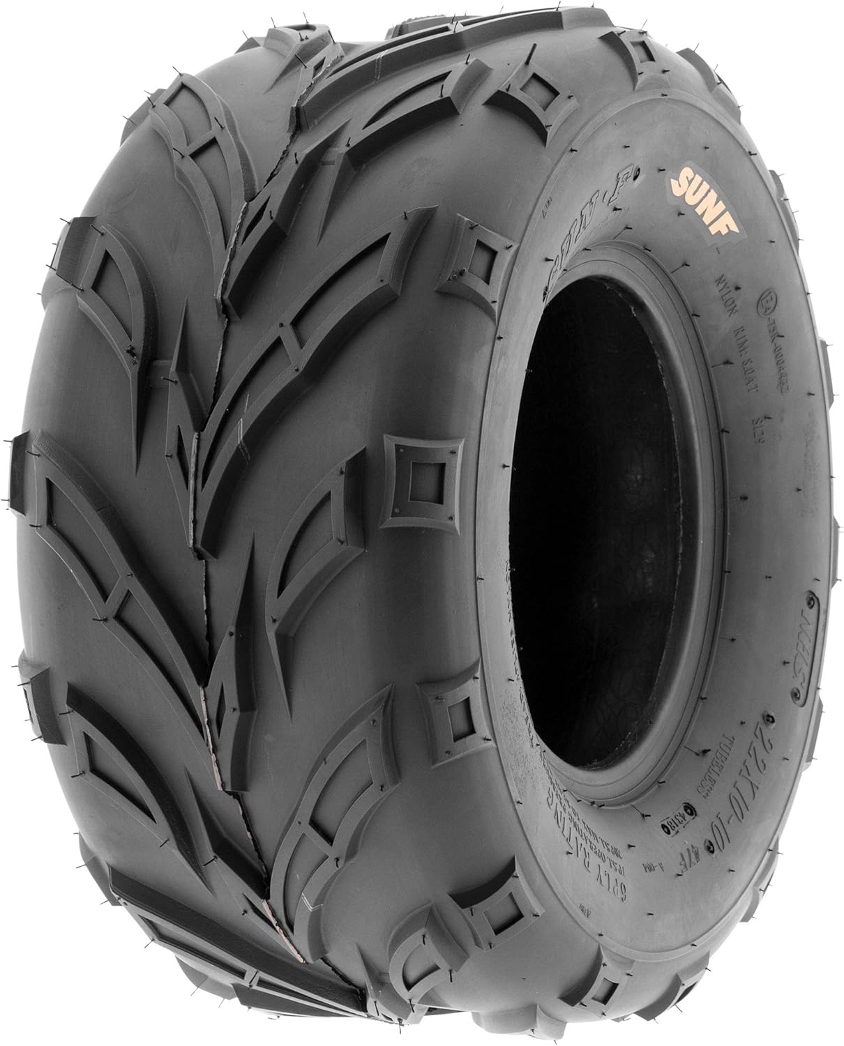 SunF Corporation has dedicated themselves to meeting their customer’s demands and needs. SunF develops and manufactures a wide variety of quality tires in the specialty market. Their line up includes ST trailer, lawn and garden, agriculture, golf cart, ATV Quad Motorcycle, UTV Side by Side, light truck & more!The SUNF A004 ATV tire showcases a specialized directional "V" tread design, enhancing all-terrain performance by providing exceptional traction and control.All-Terrain Mastery: Tailored for all types of terrains, including mud, sand, and rocky landscapes, the A004 tire stands out as a reliable choice for off-road enthusiasts seeking versatile and dependable performance.Durable 4 or 6 Ply Build: Available in both 4 and 6 ply options, the A004 tire is constructed to withstand tough conditions, offering increased durability and resistance against punctures, cuts, and impacts.Shoulder Traction Innovation: Equipped with cutting-edge shoulder traction technology, the A004 tire ensures superior grip during turns and challenging off-road maneuvers across diverse terrains.Extensive Size Range: With sizes ranging from 13 to 23 inches, the SUNF A004 tire accommodates a wide array of ATV models and rider preferences, ensuring a perfect fit for various vehicle setups and requirements.Size 1: 20x10-10
